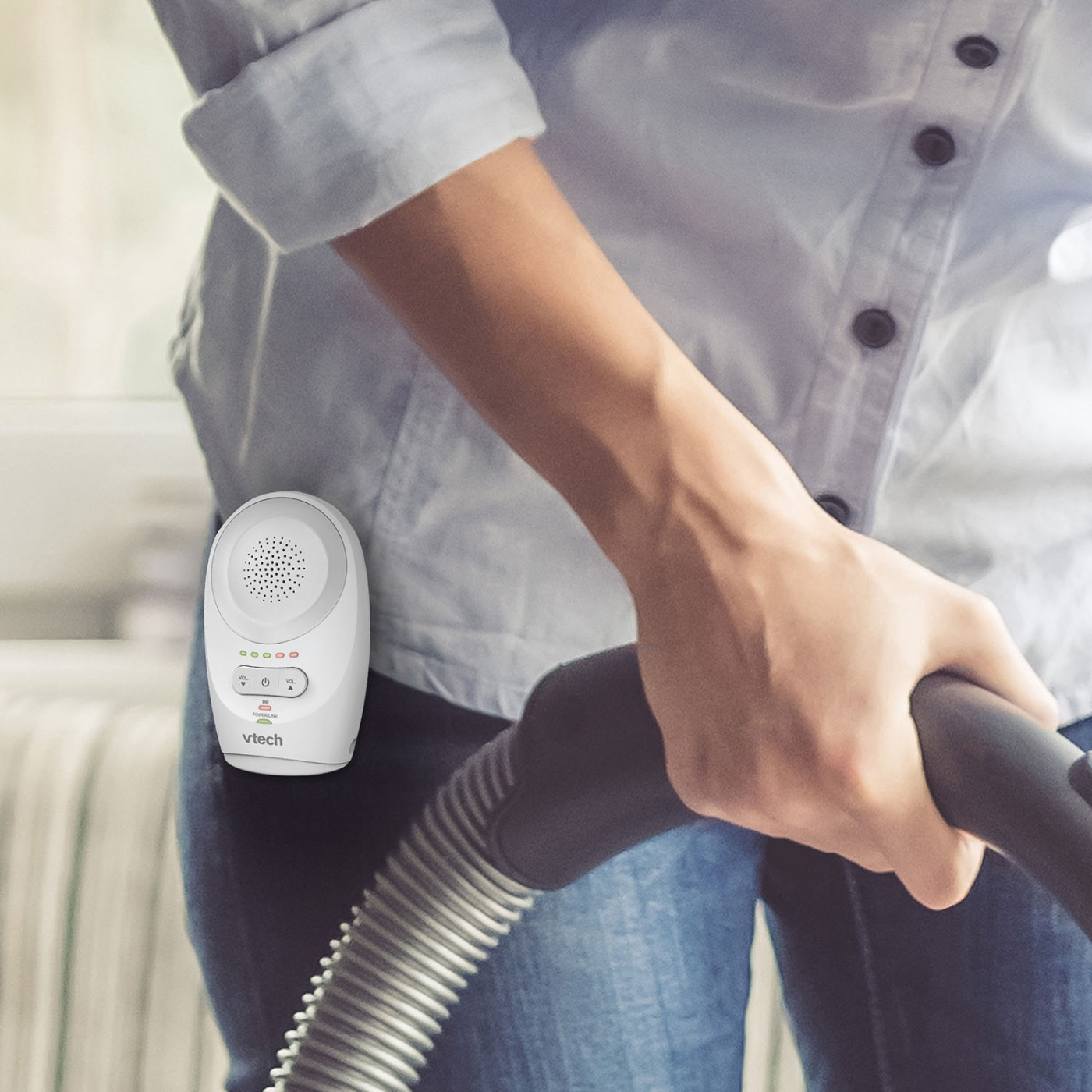 Denne digitale lyd babymonitoren fra VTECH tilbyr forbedret rekkevidde og klar lyd.