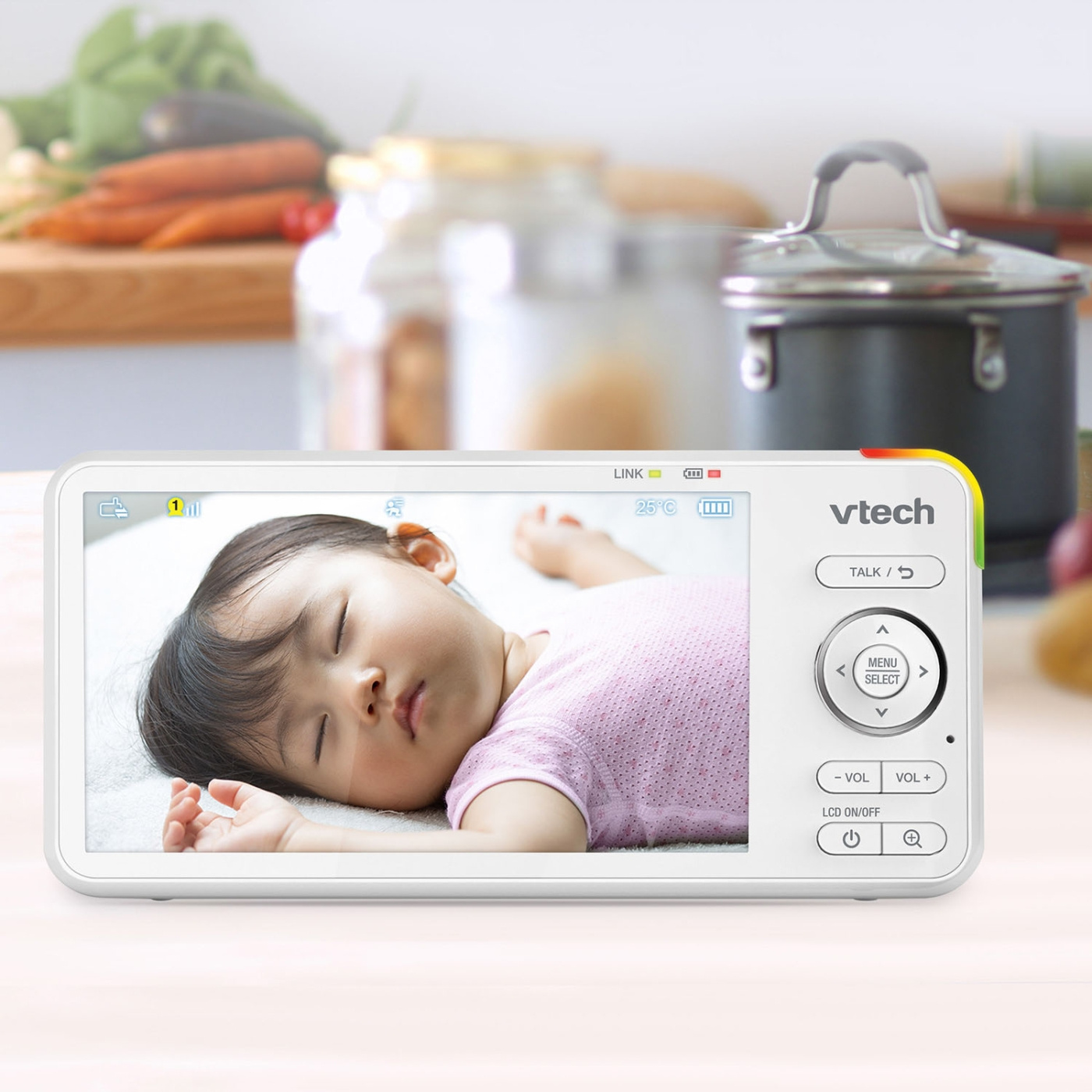 Ytterligere funksjoner inkluderer en lyd- og lysprofil for søvn, opptil 12 timers videostrømming, ultravidvinkelvisning på opptil 135 grader og både lokal og ekstern toveis samtale. Monitoren har også beroligende lyder og vuggesanger, en temperatursensor og automatisk infrarødt nattsyn for omfattende overvåking dag og natt.