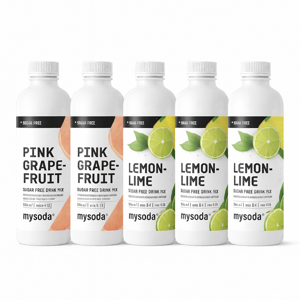 5-pack Mysoda Grape, Raspberry, Lemon 500 ml - gir 36 liter drikke