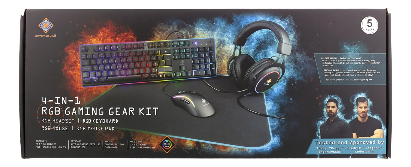 DELTACO GAMING 4-i-1 RGB Gaming Gear Kit, Headset/Tastatur/Mus/Musematte, svart/RGB