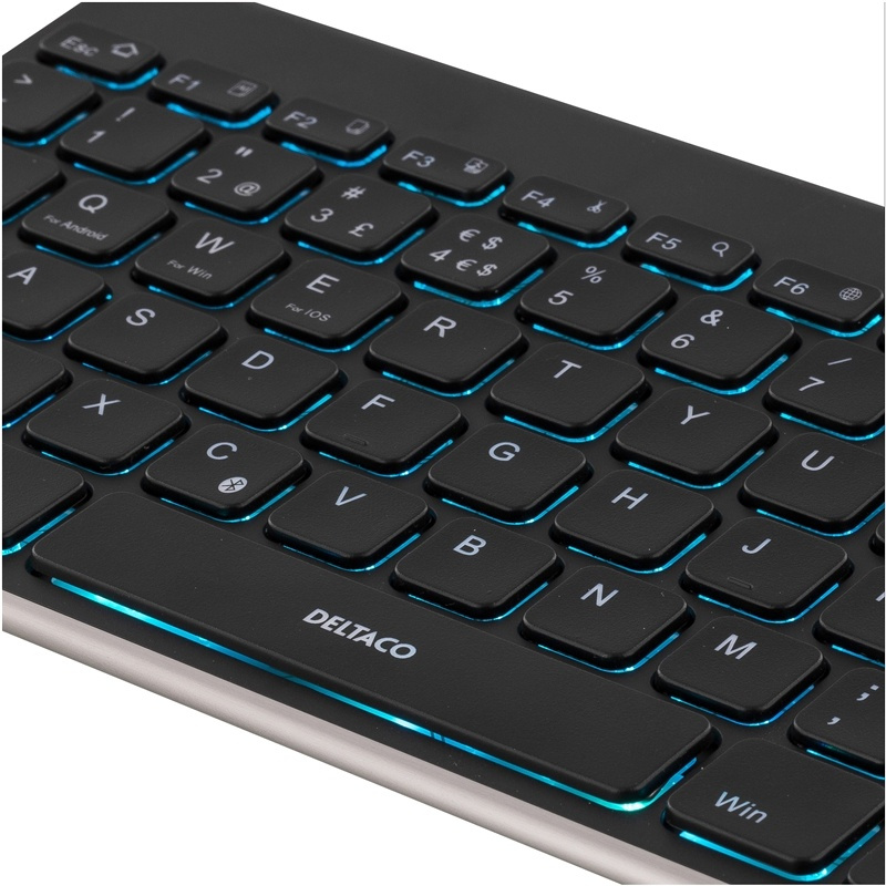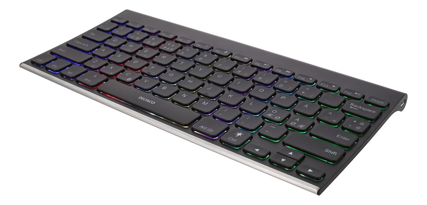 Tynt og kjekt tastatur med bakrunnsbelyste taster og trådløs kommunikasjon over Bluetooth. Bakrunndsbelysningen kan velges i 7 ulike farger samt 2 ulike lysstyrker per farge, det går også an å skru av bakrunnsbelysningen helt om man ønsker det. Du kan enkelt velge hvilket operativsystem tastaturet skal brukes sammen med, velg mellom Windows, iOS eller Android for best funksjonalitet.