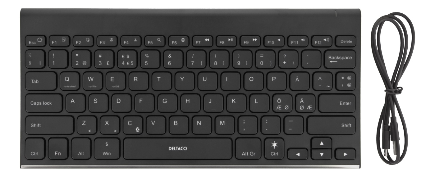 Forpakningen inneholder: Tastatur, ladningskabel og manual