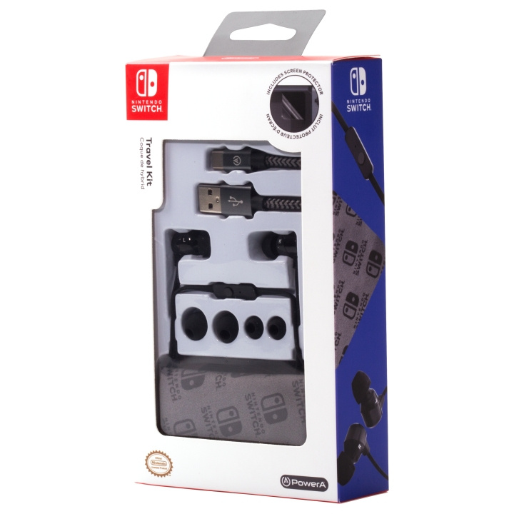 Det offisielt lisensierte Nintendo Switch Travel Kit inneholder det viktigste du trenger for å spille på farten. Settet inneholder en USB-C-kabel for å holde den ladet, tilpassede ørepropper for privat spilling, pluss en antirefleksskjermbeskytter for å redusere blending fra lys og beskytte mot riper. Vær forberedt uansett hvor du er.
