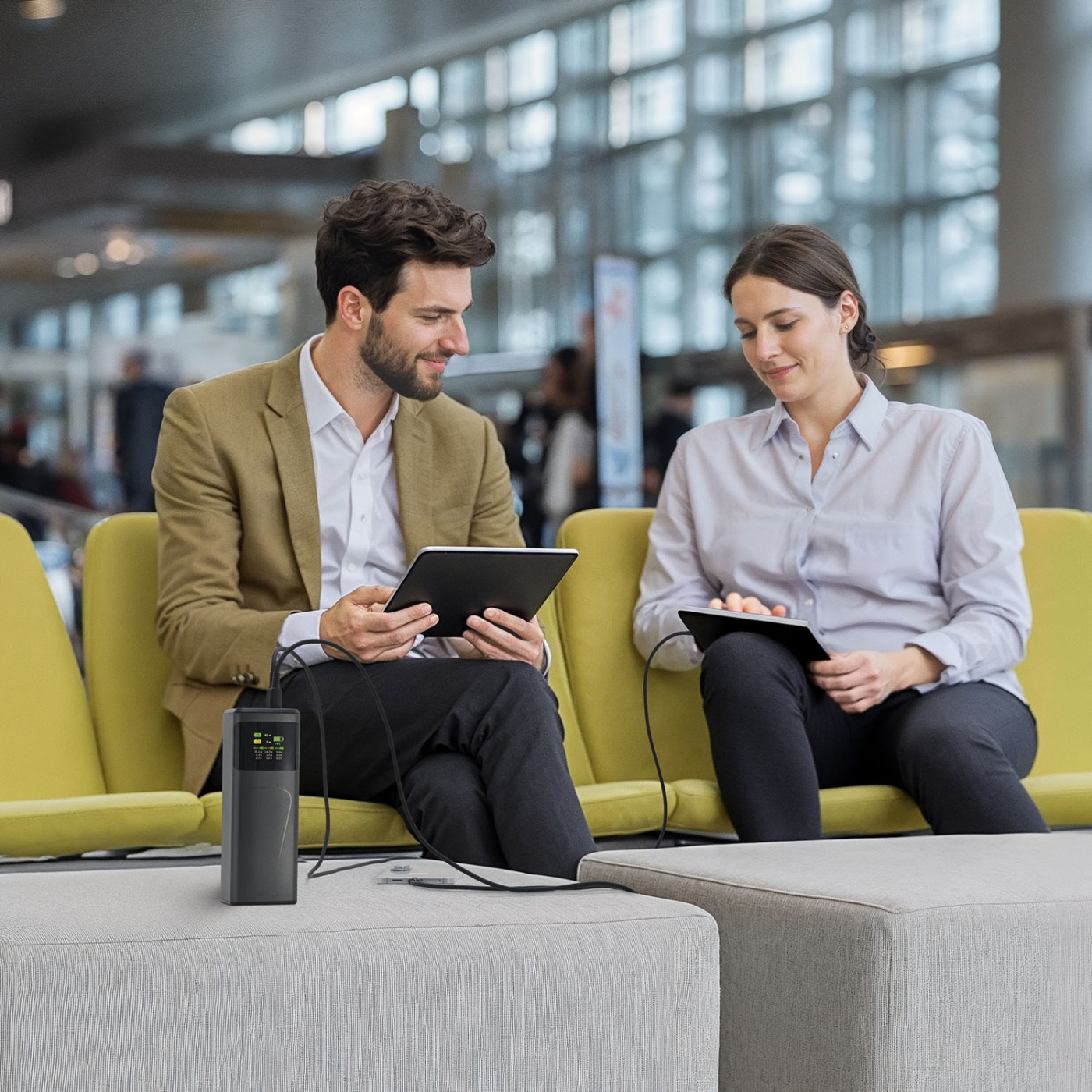 Sikkerhet er en prioritet, med sertifiserte celler som gir beskyttelse mot overladning, overspenning, overoppheting og kortslutning. Powerbankens display viser gjenværende batterikapasitet og utgangseffekt, slik at du kan administrere ladebehovene dine på en effektiv måte. I tillegg har den en lavenergimodus for mindre strømkrevende enheter, noe som sikrer at de gjenkjennes og lades på riktig måte.
