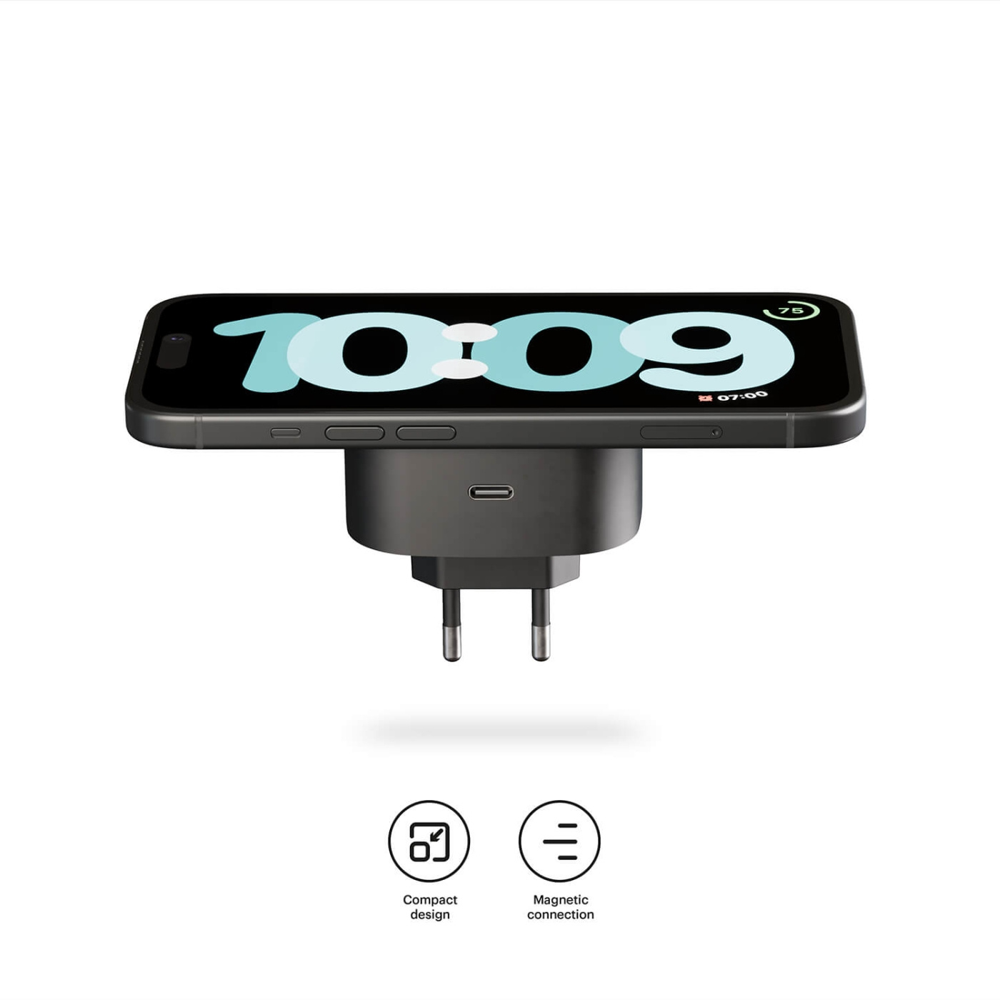 Adapteren har en 15W trådløs utgang og en innebygd 18W USB-C-port, noe som gjør det mulig å lade en annen enhet, for eksempel en iPad eller AirPods, samtidig. Den er tilgjengelig i stilig svart og hvitt, noe som gjør at den passer inn i ethvert rom og utfyller innredningen din.
