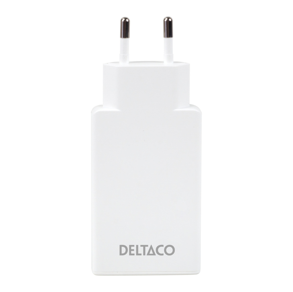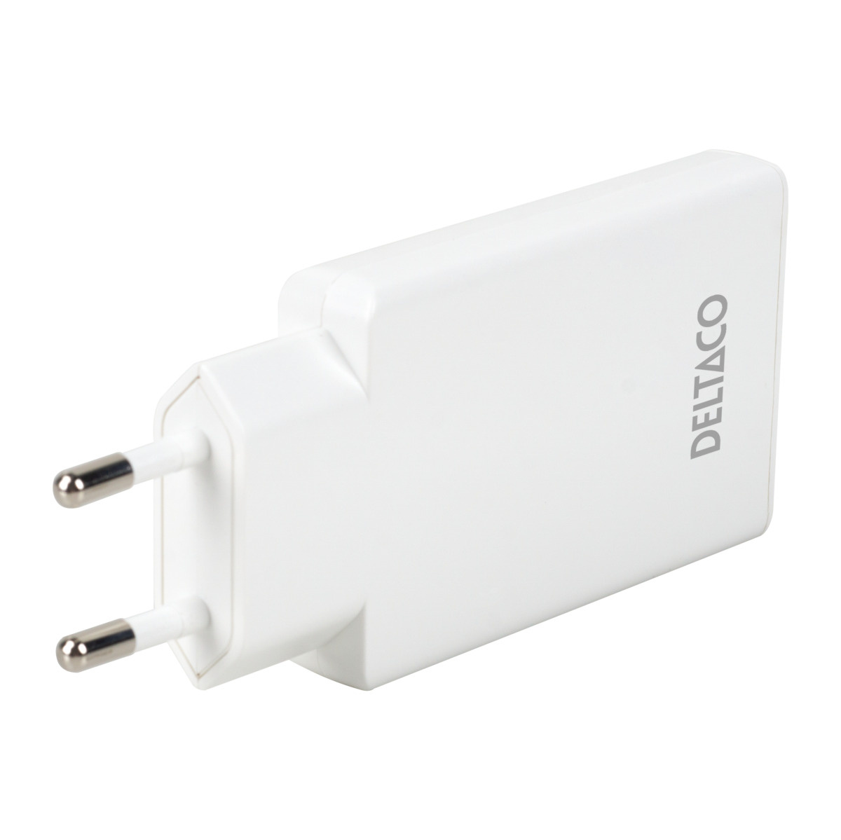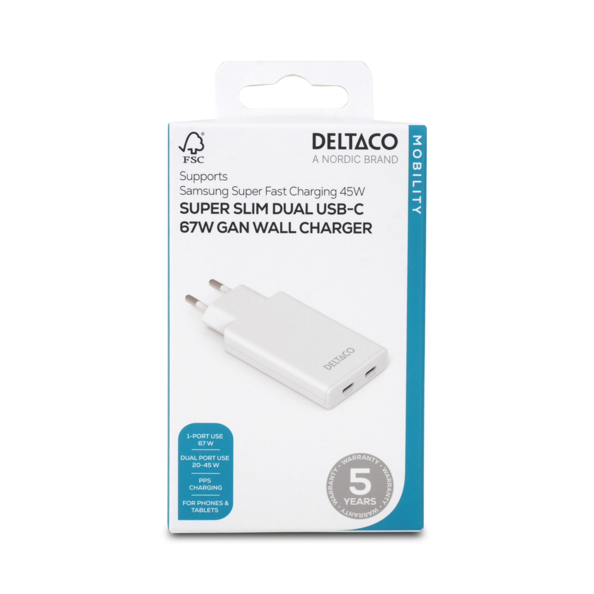 DELTACO USB-C väggladdare 67 W, 2x USB-C PD, slimmad storlek, total effekt 67 W