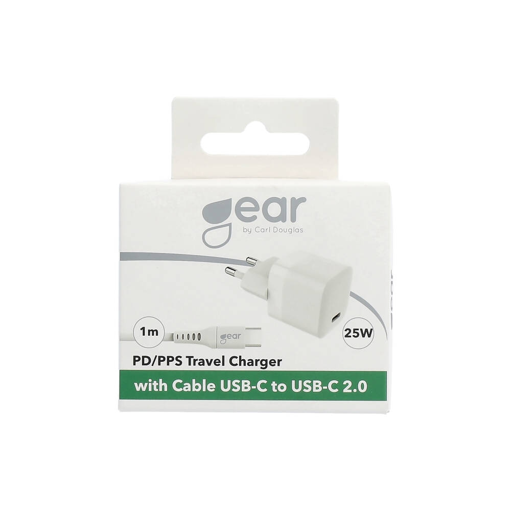Reiselader 220V 1xUSB-C PD/PPS 25W med kabel USB-C til USB-C 2.0 1m.