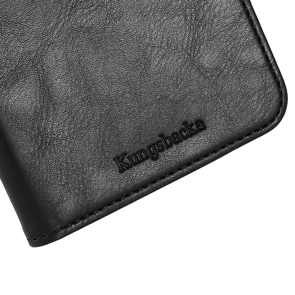Mobildeksel i vegansk skinn, med tre kortrom, stativfunksjon og magnetisk lukking.