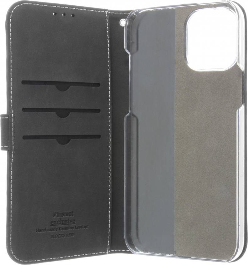 Stilig og praktisk Insmat Exclusive Flip Case lommeboketui med tre betalingskortplasser og en stor lomme til f.eks. kvitteringer eller sedler. Etuiet er laget av ekte skinn som gir en behagelig følelse, og er laget for å tåle selv den tøffeste bruk.