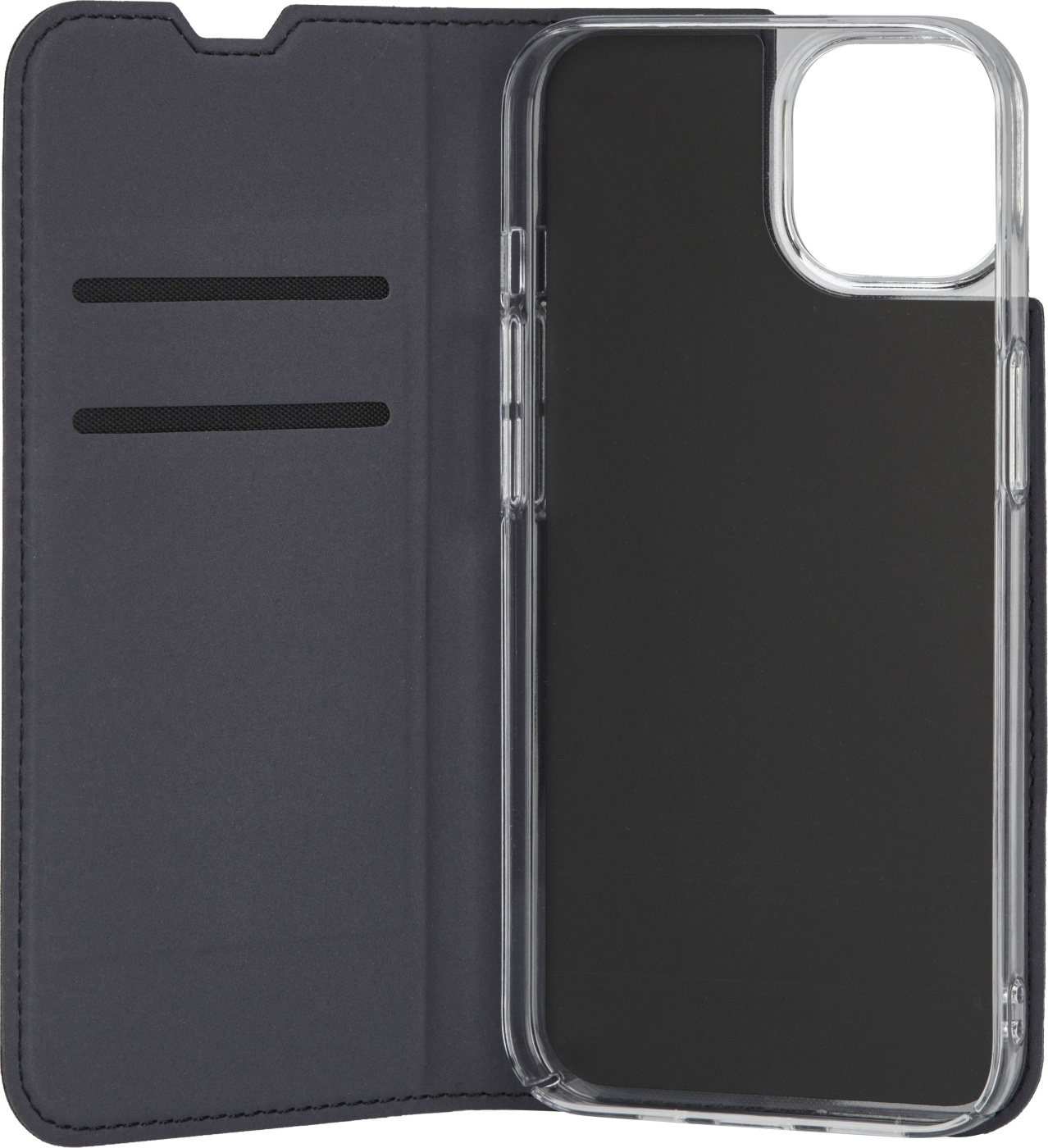 Et ekstra hengsel på lokket gjør det mulig å brette etuiet sammen til et praktisk horisontalt stativ for telefonen. Med stativet kan du for eksempel se på film uten å anstrenge hendene.