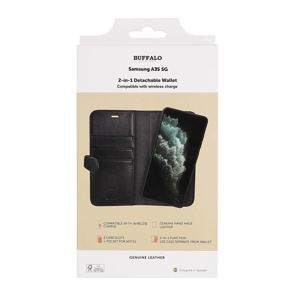 Buffalo Mobildeksel Lær 2-i-1 Svart - Samsung A35 5G