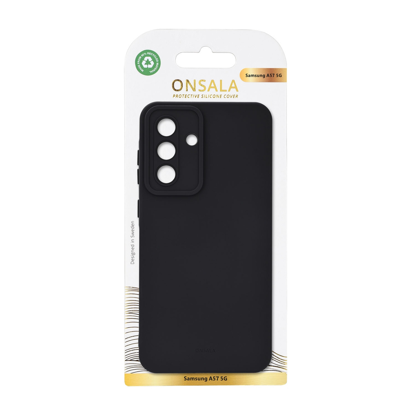 Mobildekselet har en stilren svensk design og er laget av resirkulert materiale. Den myke, matte silikonyten med Onsalas diskrete logo gir både et elegant uttrykk og et behagelig grep. Med sin hverdagslige og stilrene farge er det enkelt å matche dekselet med ulike stiler samtidig som mobilen beskyttes på en elegant måte.