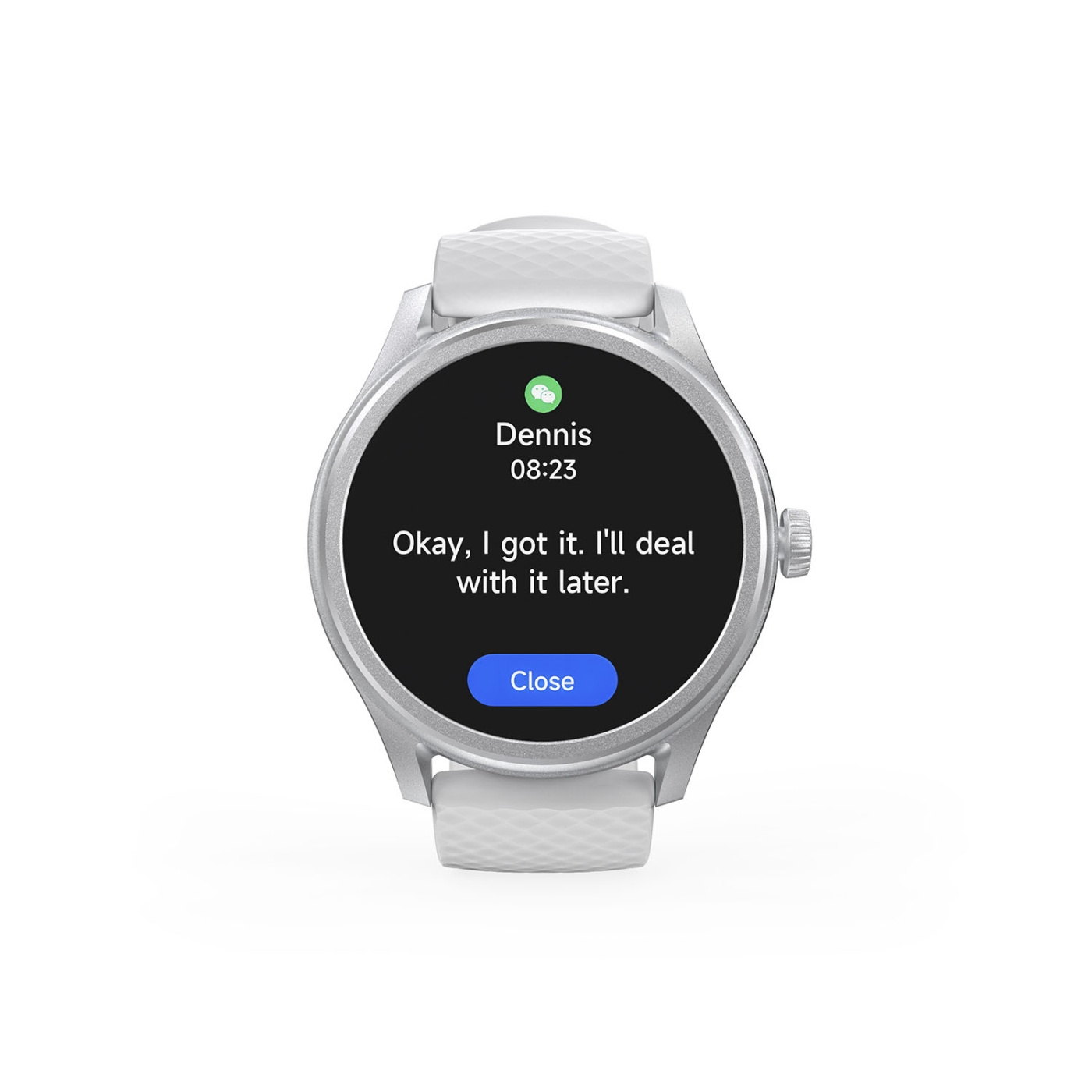 Hold kontakten når du er på farten med smartklokkens telefonfunksjon, slik at du kan ringe og motta samtaler direkte fra håndleddet. Stemmeassistentfunksjonen gir enkel tilgang til Siri eller Google Assistant, slik at du kan håndtere oppgaver håndfritt. Smartklokken støtter også varslinger for meldinger og e-post, slik at du kan holde deg oppdatert uten å måtte sjekke telefonen.