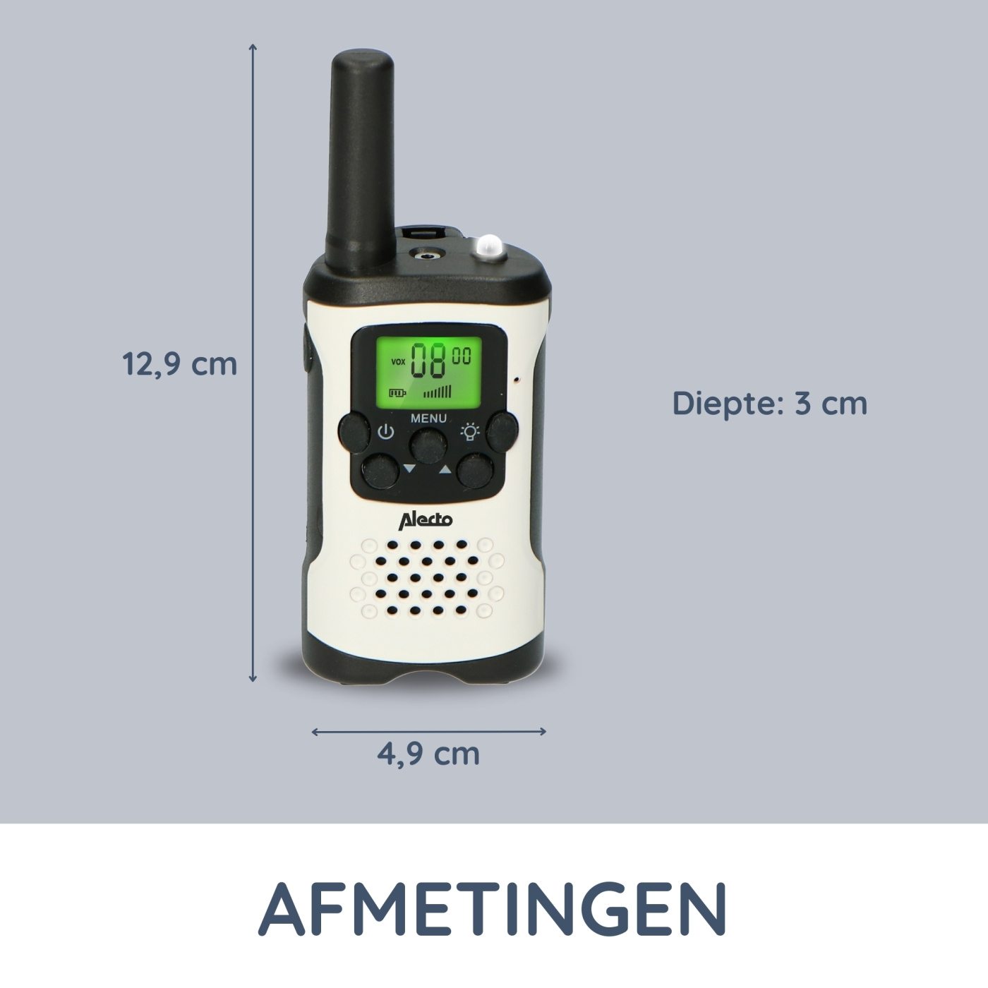 Med disse slitesterke utendørs walkie-talkiene kan dere holde kontakten med hverandre under hver aktivitet, og helt gratis. Dette settet er kompakt og har en belteklips. Walkie-talkiene bruker 8 kanaler og skanner automatisk etter tilgjengelige kanaler. Det er også superpraktisk at dette settet kan brukes håndfritt i kombinasjon med Alecto FRH-10-headsettet. Dette gjør bruk av walkie-talkier lovlig og trygt under kjøring.