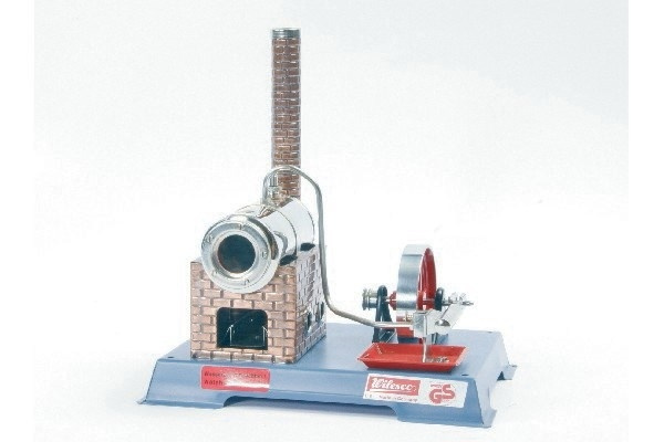 Speilpolert og forniklet kjele, diameter 45 mm, lengde 100 mm, kjelekapasitet 135 cm³ med vannmålerglass. Kjelhus, farget og kobberbelagt, med pregede murvegger. Oscillerende sylinder og stempel i messing, fjærbelastet sikkerhetsventil, kuppelfløyte, svinghjul med 70 mm diameter og rillet remskive. Finlakkert metallplate