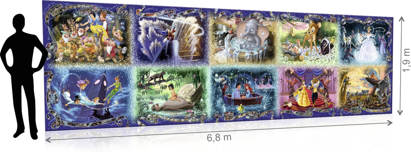 Er du klar til å løse verdens største puslespill? Ravensburger Guinness World Records har bekreftet at Disney Gravity-puslespillet er det største puslespillet i verden som er kommersielt tilgjengelig. Ravensburger Disney Gravity-puslespillet er det største i verden, både når det gjelder størrelse og brikker. Dette enorme puslespillet består av ti minneverdige Disney-klassikere. Temaene for illustrasjonene er: Snøhvit, Fantasy, Dumbo, Bambi, Askepott, Peter Pan, Jungelboken, Den lille havfruen, Skjønnheten og udyret og Løvenes konge. Hvert bilde kan også bygges uavhengig av hverandre og inneholder rundt 4000 brikker. Illustrasjonene er innrammet av en filmstripe, og på denne er det trykt utgivelsesåret for hver film.