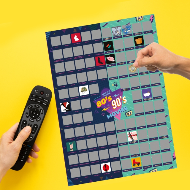 Forestill deg spenningen ved å avdekke en skjult perle hver gang du skraper av en film du har sett. Med 100 av de mest minneverdige filmene fra 80- og 90-tallet er denne plakaten en visuell fest som hyller kreativiteten og historiefortellingen som definerte en hel generasjon. Fra actionfylte storfilmer til hjertevarmende dramaer - hver film er et vitnesbyrd om epokens kulturelle innflytelse.