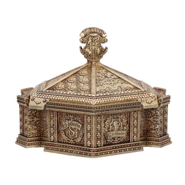 Magi venter på deg med denne offisielt lisensierte Harry Potter Galtvort-esken. Med de fire Galtvort-husene rundt utsiden, sammen med detaljer basert på Dødsregaliene og Galtvort. Denne Galtvort-esken er støpt i den fineste harpiks og deretter ferdigstilt i bronse, og er som skapt for å holde alle dine hemmelige skatter trygge.