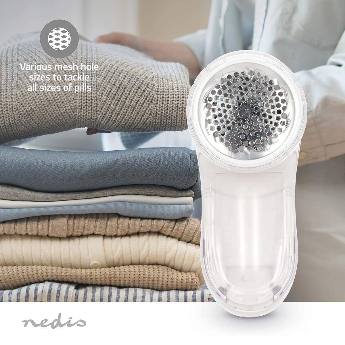 Beholderen som samler opp pillene som fjernes, er enkel å ta av og tømme, noe som gjør vedlikeholdet raskt og problemfritt. Det gjennomtenkte nettingdekselet har ulike hullstørrelser for å takle piller av ulike dimensjoner. For ekstra pleie av fine plagg følger det med en høydejusterbar hette som gir ekstra beskyttelse under bruk.