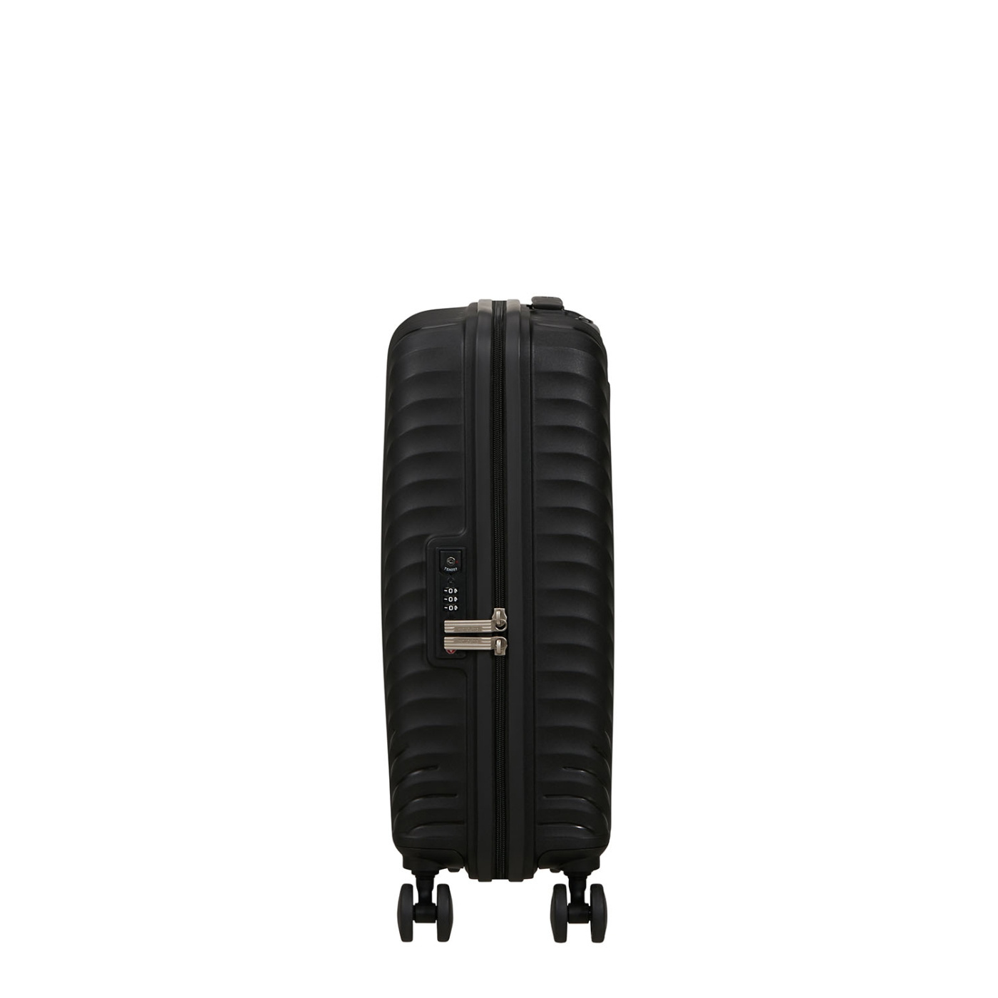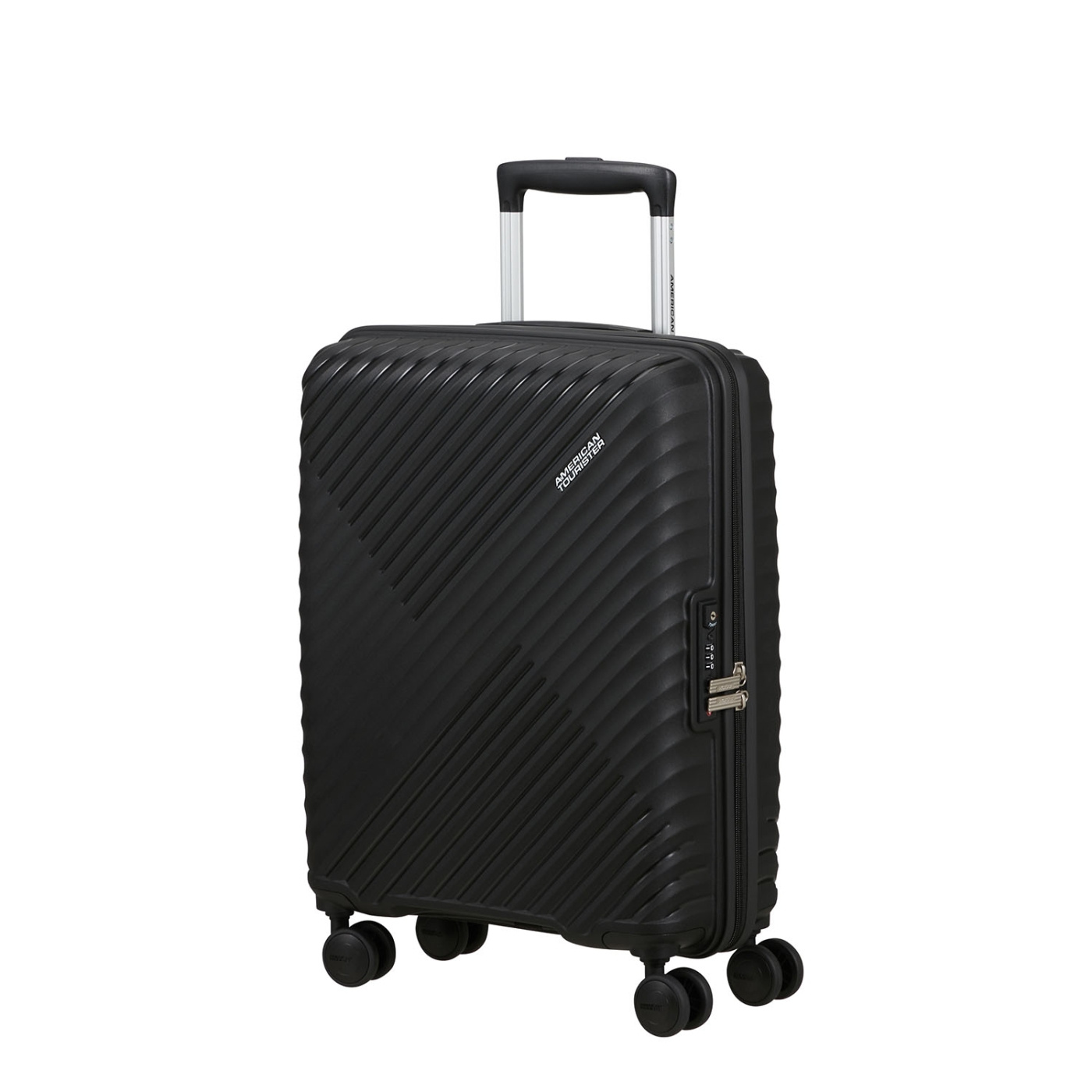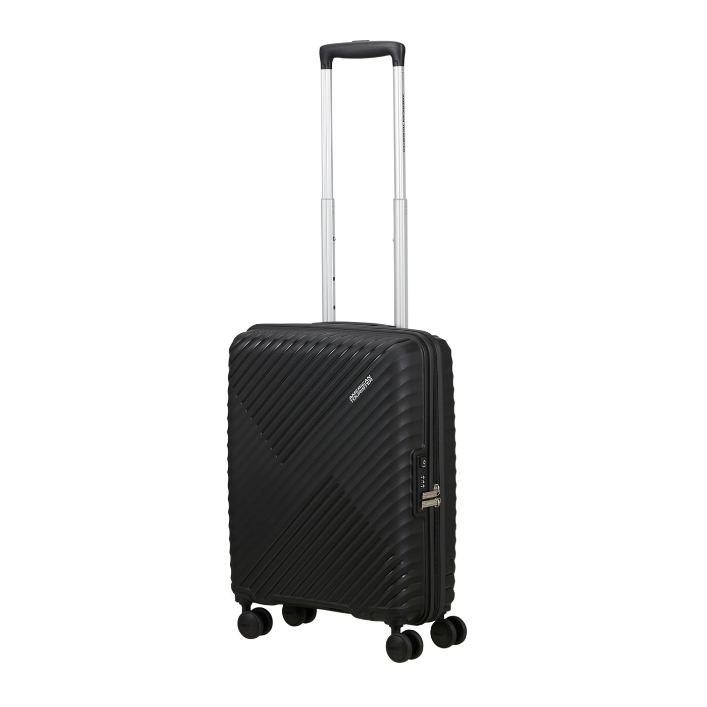 En koffert fra American Tourister med TSA-lås og lettrullende hjul.