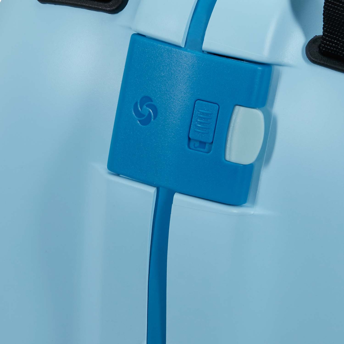 Övrigt: Integrerad ID-tagg, vävda handtag, och multifunktionellt bälte som kan användas som axelrem eller fästas vid incheckning