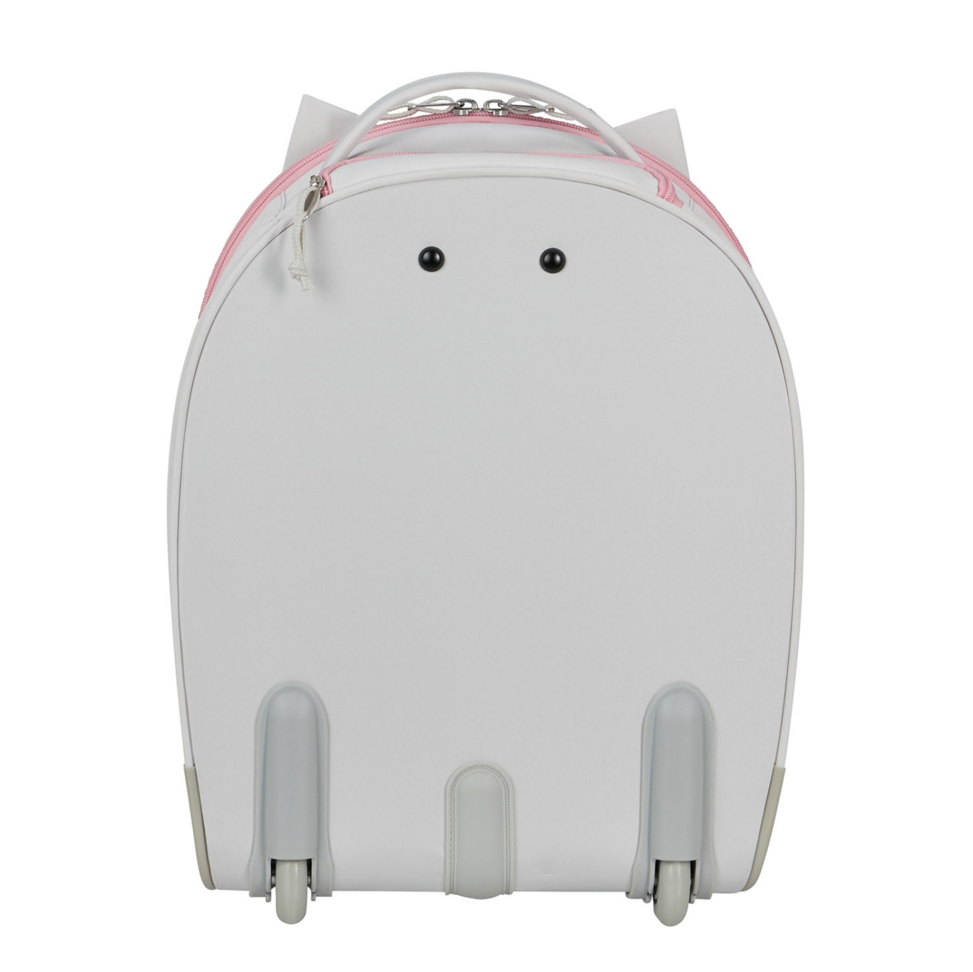Den myke vesken har et trekkhåndtak med to skinner og et integrert hjulsystem for enkel manøvrering. Den sjarmerende designen har myke 3D-detaljer som gjør den til en herlig livsstilskolleksjon for barn. Den oppreiste vesken har matchende fôr og integrerte hjul, noe som sikrer en sømløs reiseopplevelse.
